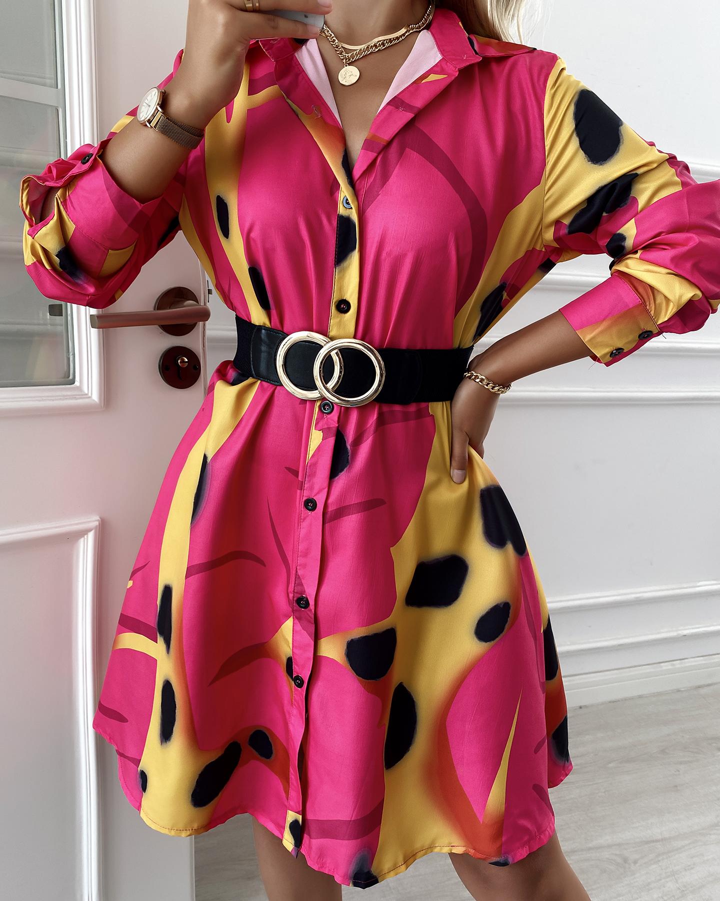Style:Chic Type:Shirt Material:Polyester Neckline:Turn-down Collar Sleeve Style:Long Sleeve Length:Mini Pattern Type:All Over Print Decoration:Button Fit Type:Regular Occasion:Daily Package Include:1* Dress