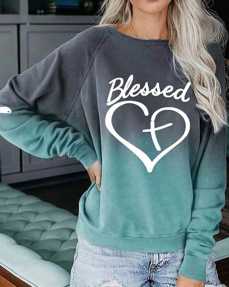 Ombre Letter Print Raglan Sleeve Sweatshirt