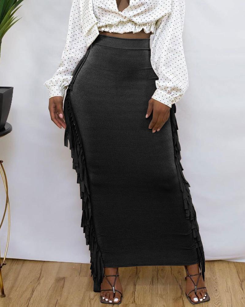 Beaded Decor Ruffle Hem Asymmetrical PU Leather Skirt