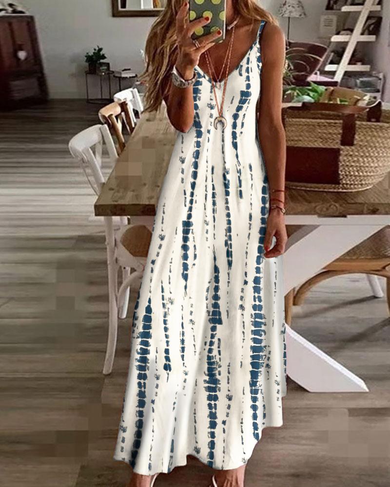 Style:Casual Type:Cami,Flared Material:95%Polyester,5%Elastane Neckline:V-Neck Sleeve Style:Sleeveless Length:Maxi Pattern Type:Tie Dye Fit Type:Regular Occasion:Daily Package Include:1*Dress