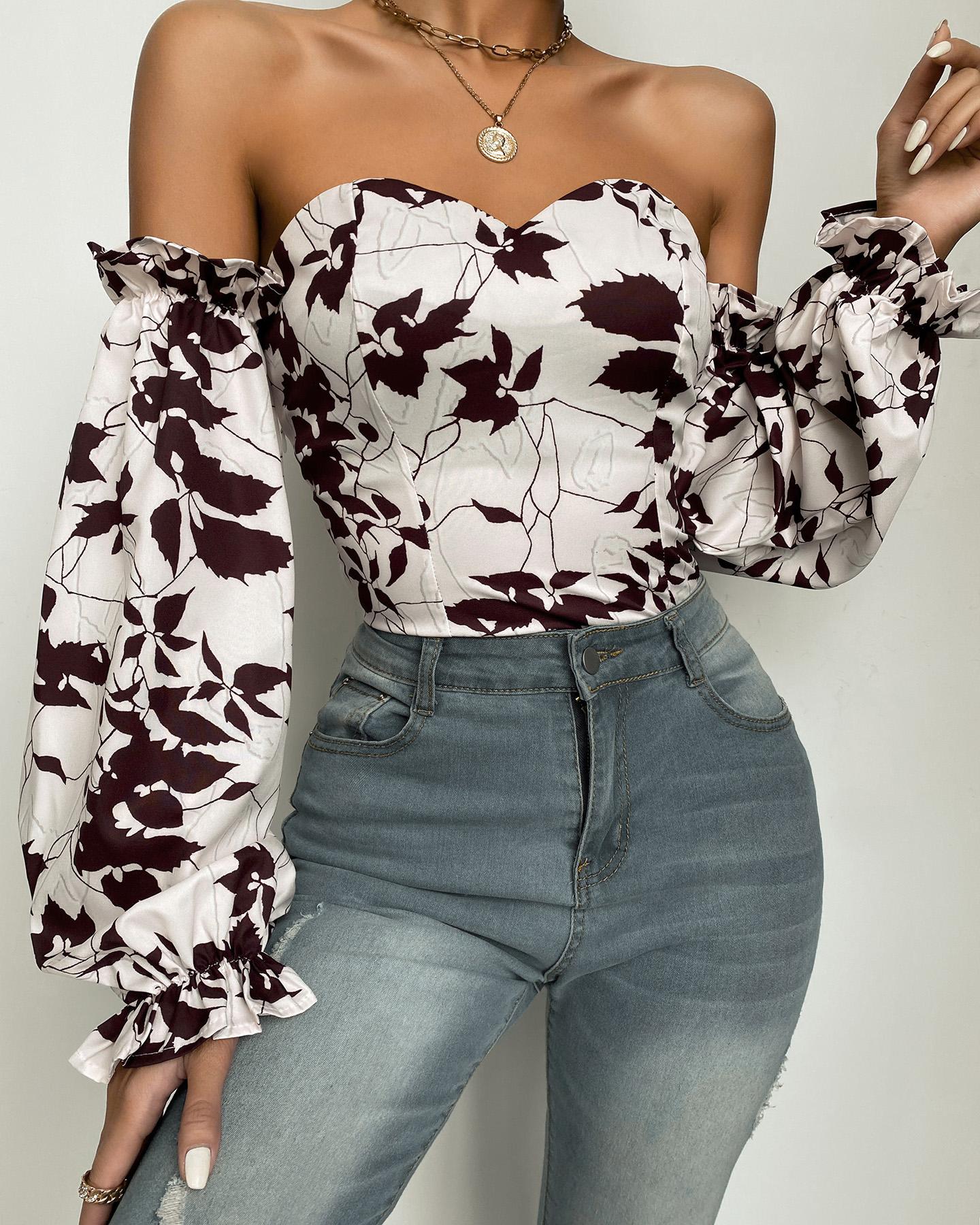Style:Chic Type:Regular Material:Polyester Neckline:Sweetheart Neck Sleeve Style:Long Sleeve Length:Regular Pattern Type:Floral Fit Type:Regular Occasion:Daily Package Include:1* Blouse