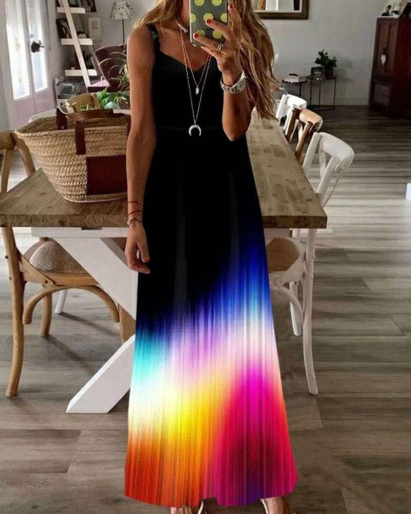 Ombre Colorblock V-Neck Sleeveless Maxi Dress