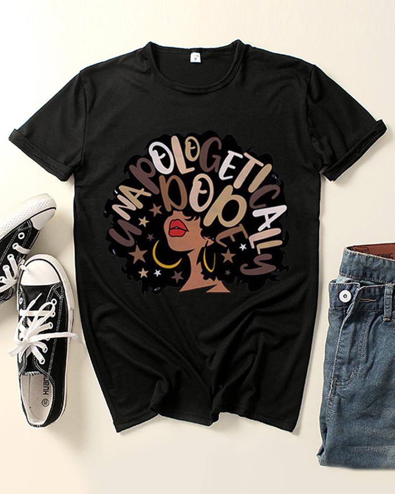 Style:Casual Type:Tee Material:Cotton Blends Neckline:Round Neck Sleeve Style:Short Sleeve Length:Regular Pattern Type:Letter,Figure Fit Type:Regular Occasion:Daily Package Include:1*T-Shirt
