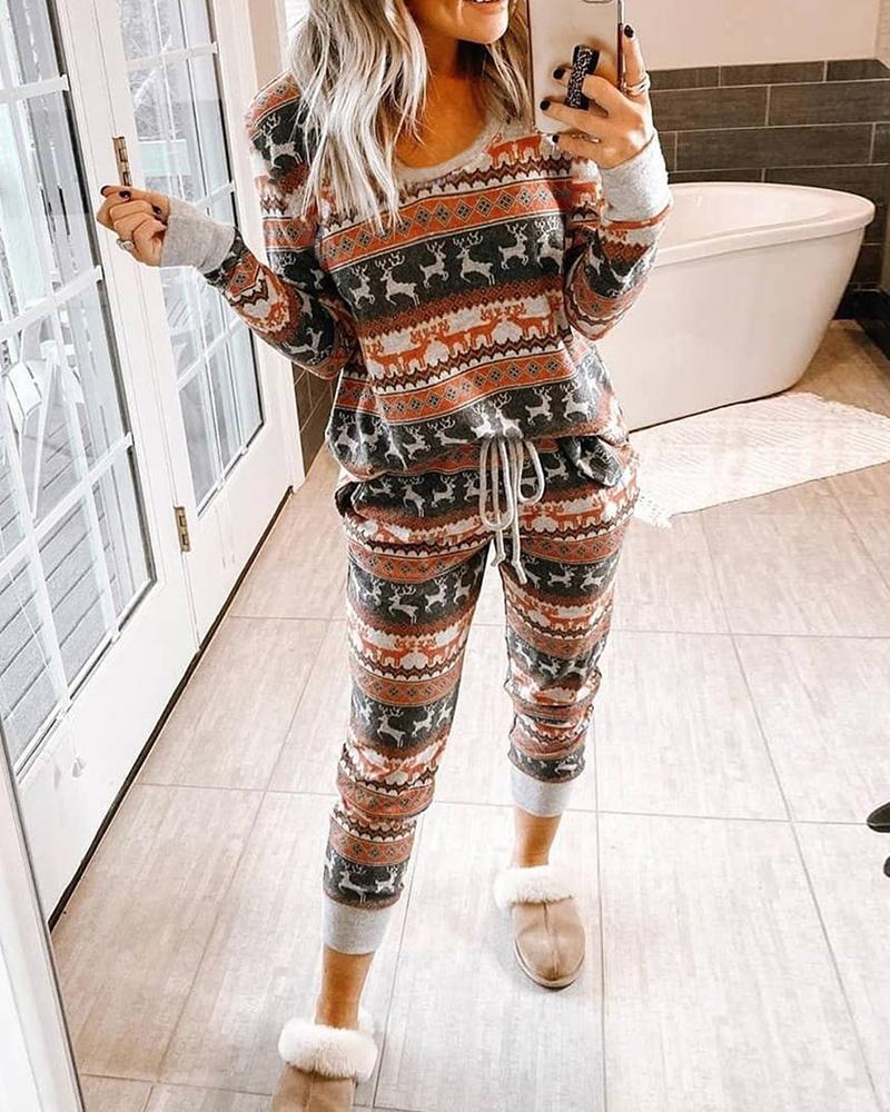 Style:Casual Type:pajamas set Material:CottonBlends Neckline:Round Neck Sleeve Style:Long Sleeve Length:Long Pattern Type:Christmas Fit Type:Regular Occasion:Bedroom Package Include:Pants Set