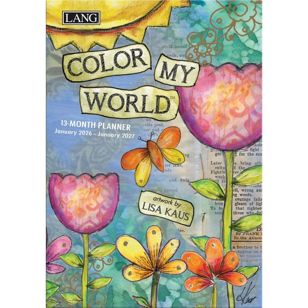 The 2026 Color My World Monthly Planner by Lisa Kaus - Lang Companies is a vibrant and functional monthly planner adorned with the enchanting artwork of Lisa Kaus. Each month unfolds with a new, whimsical design, blending creativity with practicality, perfect for organizing your year ahead. Features Lisa Kaus' captivating and colorful artwork for each month, enhancing your planning experience with artistic flair. Includes a 2026 Planning Guide to help you map out your year with ease. Crafted with a linen embossed paper cover and pocket sleeve for durability and a luxurious feel. Large grid size on each monthly spread, providing ample space for notes, appointments, and reminders. Stapled binding ensures the planner remains intact throughout the year, making it both reliable and easy to use. This planner not only serves as a tool for organization but also as a piece of art that brightens any space. It's ideal for anyone seeking a blend of style and function in their scheduling. The planner starts in January 2026 and covers each month through to December, offering a structured layout that includes major international holidays and moon phases. Step into a more organized and inspired year with the 2026 Color My World Planner. Perfect for personal use or as a thoughtful gift. Secure your copy today and start planning a colorful year!