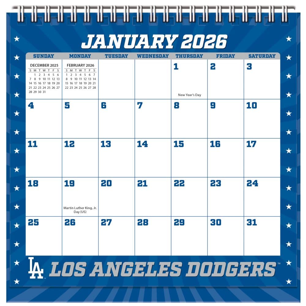 Celebrate your love for the Los Angeles Dodgers all year round with the MLB Los Angeles Dodgers 2026 Easel Desk Calendar. Perfectly designed for any sports fan's desk or countertop, this calendar features a built-in easel for easy display and viewing. Enjoy marking your special dates and appointments while showing off your team spirit. Spiral binding allows the calendar to lay flat on your desk, ensuring easy writing and viewing of dates. Compact grid size is ideal for noting down important game days and personal appointments. Features a sturdy cardboard backing that provides a solid writing surface. Includes all major U.S. holidays, helping you stay on top of your schedule. Officially licensed MLB product, showcasing authentic Los Angeles Dodgers logos and colors. This desk calendar is not just a tool for organization; it's a way to express your fandom. The Los Angeles Dodgers graphics and team colors make it a great addition to any fan's collection or as a gift for a fellow enthusiast. Start planning your year with the Dodgers and never miss an important date or game! Order your Los Angeles Dodgers 2026 Easel Desk Calendar today and keep your team spirit alive throughout the year!
