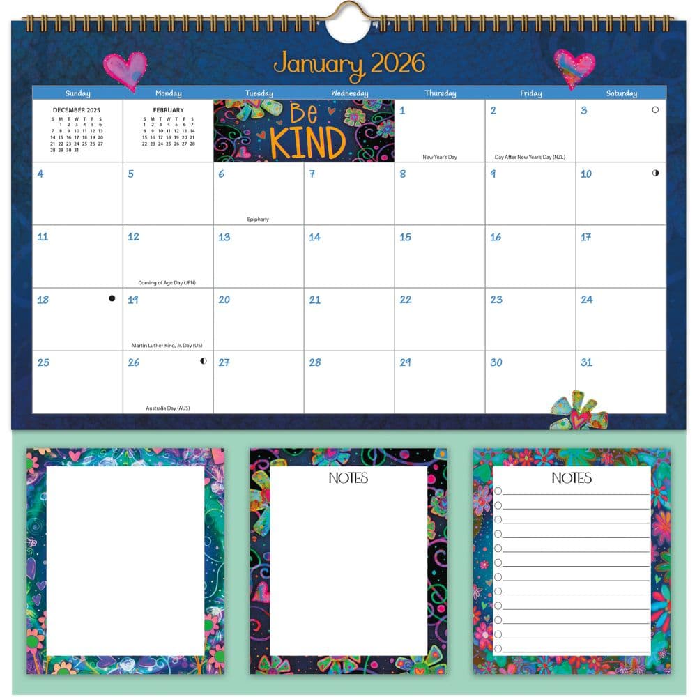 Brighten your year with the Inspirivity MemoMate 2026 Spiral Calendar by Jennifer Wagner, featuring a collection of motivational quotes and vibrant, eye-catching designs. This wall calendar is perfect for anyone looking to add a splash of inspiration and color to their daily routine. Produced by The LANG Companies, this calendar has become a favorite for its engaging content and beautiful presentation.Dimensions: Closed size of 12 x 12.13 inches and open size of 12 x 24.26 inches, ideal for wall hanging.Includes2 tear-off list pads (50 SHEETS EACH) 1 sticky notepad (50 SHEETS)Spiral binding allows the calendar to lay flat, making it easy to write on and flip through.Includes a 12-month span from January to December 2026 with U.S. and international holidays, helping you stay on top of important dates.Features large grid spaces for appointments and notes, starting each week on Sunday for easy weekly planning.Printed on high-quality paper, ensuring durability and a great writing experience.Each month showcases a unique, beautifully designed quote that encourages positivity and kindness, making it more than just a calendarit's a source of daily motivation. The additional notes section in each month offers ample space for jotting down ideas, reminders, and more.Start each day with a positive note and keep your schedule organized with theInspirivity MemoMate 2026 Spiral Calendar by Jennifer Wagner. Perfect for home, office, or as a thoughtful gift. Order now and make 2026 a year of inspiration and organization!