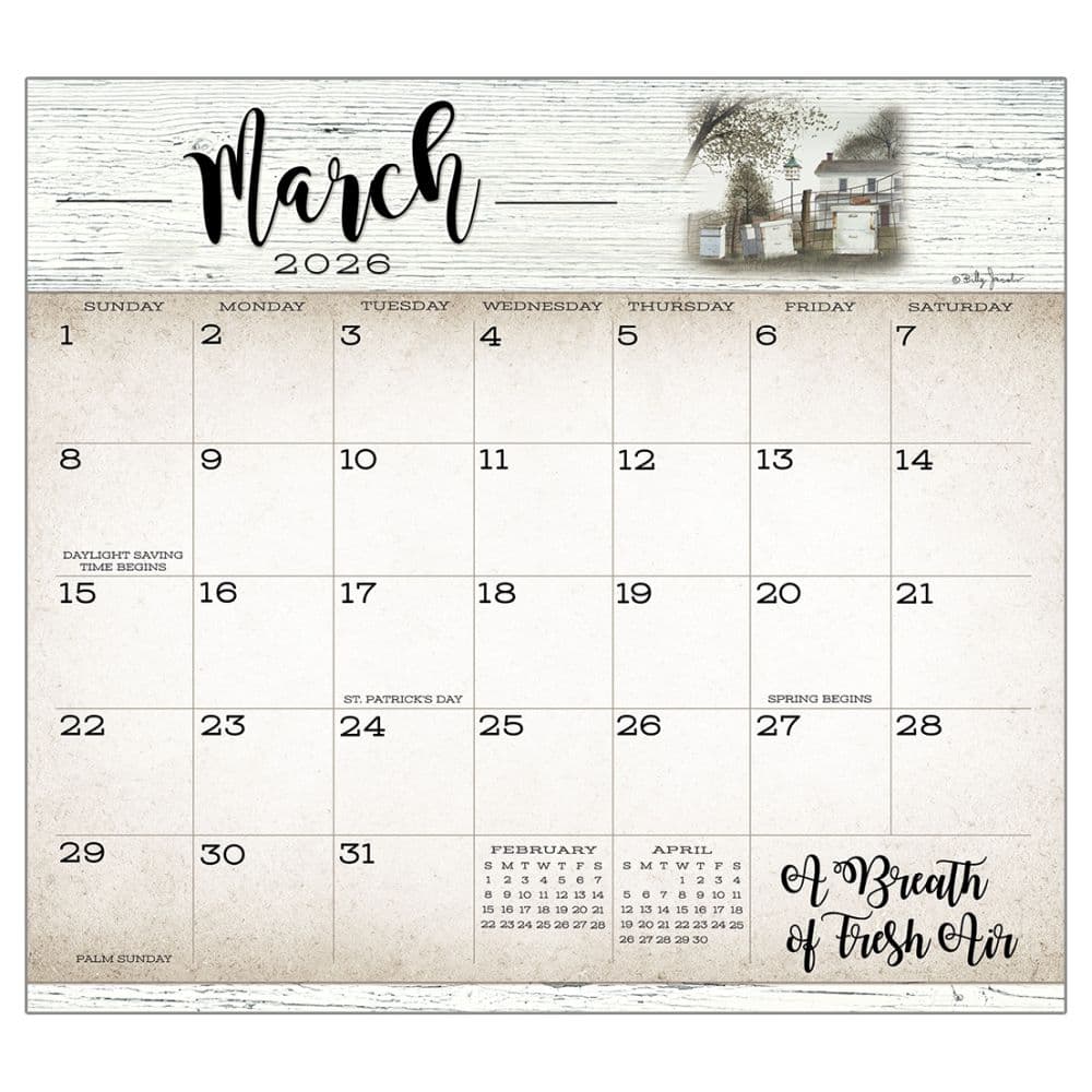 Experience the rustic charm of the countryside all year round with the 2026 Farmhouse Magnetic Calendar by Billy Jacobs. This beautifully designed calendar from Legacy Publishing Group captures the essence of farm life through the changing seasons, making it a perfect addition to your kitchen or office space. Each month features a different artwork that reflects the serene and pastoral beauty of rural life, printed on premium paper for a high-quality feel. Magnetic strip on the back allows for easy attachment to refrigerators or file cabinets. Features a unique designed date pad with easy tear-away sheets for daily use. Adhesive binding ensures pages stay securely in place throughout the year. Includes major U.S. holidays and notable dates, helping you stay organized. Compact size of 9.38 x 8.38 inches, ideal for small spaces. Crafted with care, this calendar not only serves as a practical organizer but also as a piece of art that brings a touch of warmth to your daily routine. The magnetic feature adds convenience, allowing you to display the calendar in frequently used areas like the kitchen or office for easy access. Add a touch of farmhouse elegance to your daily planning. Order the 2026 Farmhouse Magnetic Calendar by Billy Jacobs today and keep track of important dates in style!
