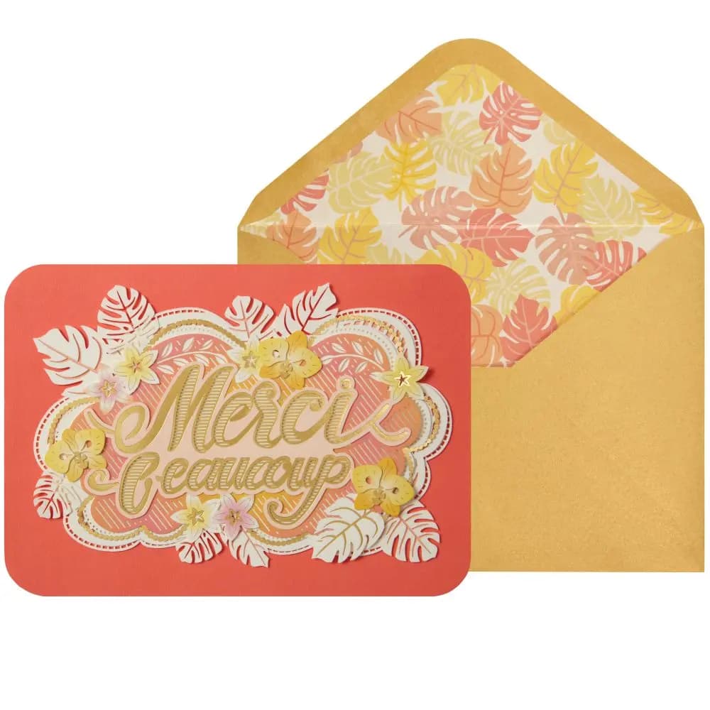 Are you looking for a way to ?Merci Beacoup? someone special for their thoughtfulness? NIQUEA.D has the perfect solution ? our beautiful Laser Cut Merci Beacoup Thank You Card! This elegant card features a stunning laser layer with a hint of gold foil, making it an exquisite gift of gratitude. And it's blank inside so you can compose a heartfelt message just for them. Show your appreciation and make their day with this classic card that conveys your gratitude. Our Laser Cut Merci Beacoup Thank You Card is sure to show your appreciation in style! Occasion: Thank YouMeasures: 5 X 7Embellishment: Laser Layer, FoilSentiment: Blank inside for your personal message